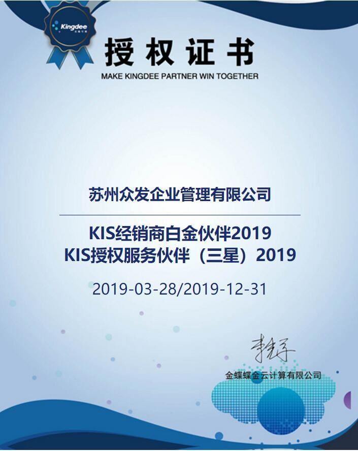 KIS經(jīng)銷商白金伙伴2019 KIS授權服務伙伴(三星)2019